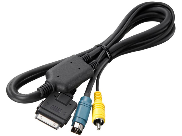iPod pajungimo laidas, skirtas norint prijungti iPod grotuva prie Alpine IVA-D106R, kai naudojamas Parrot laisvu ranku modulis Alpine KCE-400BT (iskaitant ir vaizdo atkurima).