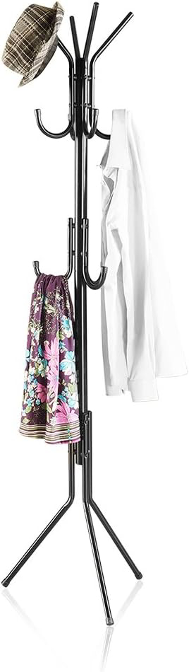 Paltu stovas, metaline kabykla su 11 kabliuku, 3 kojos, drabuziu kabykla, paltai, kepures, krepsiai, iejimo miegamojo biurui, juoda
