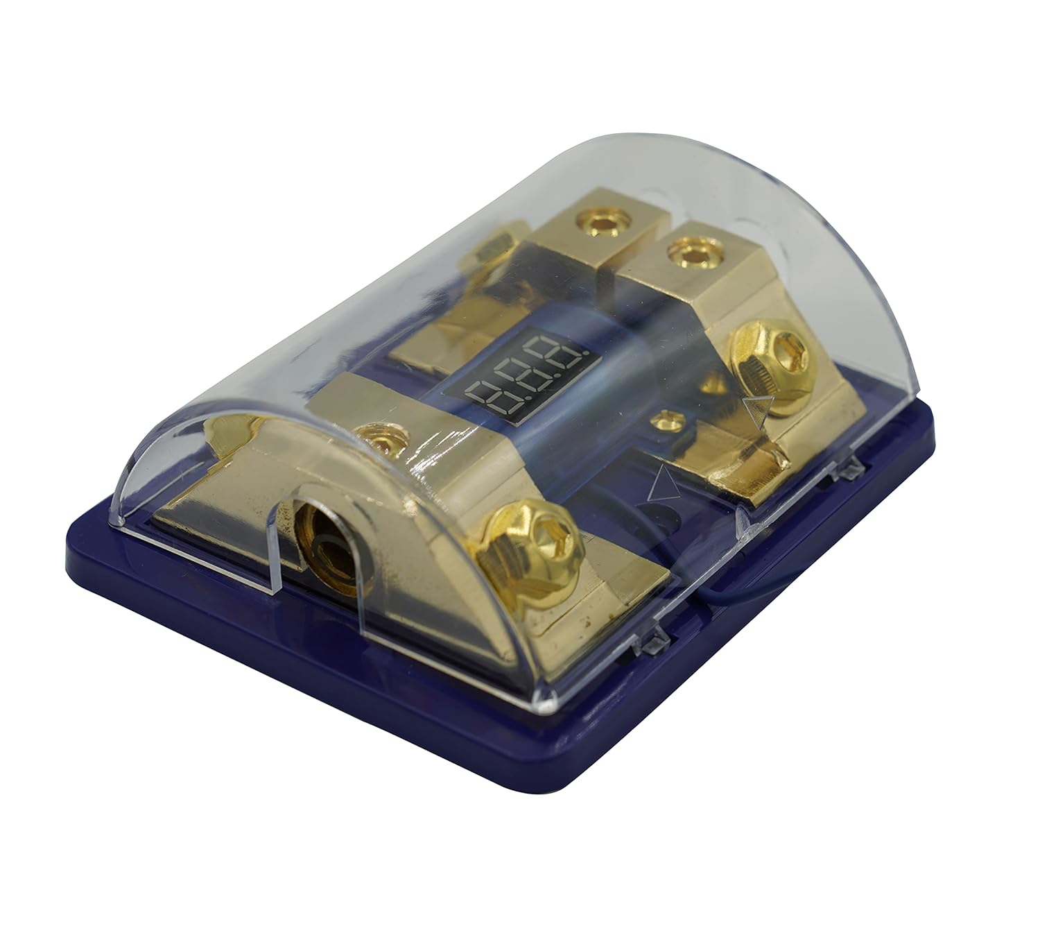 Saugiklinė - paskirstytojas 2x ANL tipo saugikliams Su voltmetru Korpusas fiksuojamas 1X20/50mm2 įėjimai 2X8/20mm2 išėjimai. Korpusas melsvos spalvos Itin ryškus LED raudonas indikatorius