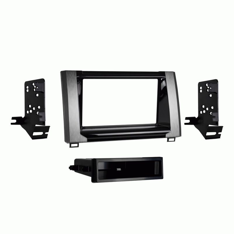 Rėmelis automobilinei magnetolai. Skirtas keičiant gamyklinę magnetolą į standartinę 1-DIN arba 2-DIN. Sidabro spalvos. Stalčiukas ir visi reikiami tvirtinimo elementai komplekte. Tinkamas šiems automobiliams: • Toyota Tundra 2014->
