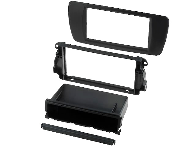 Remelis automobilinei magnetolai. Skirtas keiciant gamykline magnetola i standartine 2-DIN. Juodos spalvos (AN1). Komplekte su stalciuku ir pertvara, 1-DIN magnetolos montavimui.
