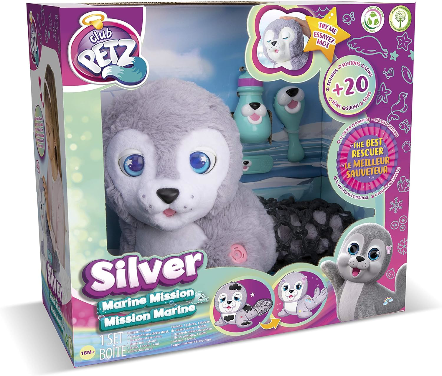 Linksmas ruoniukas, kuri galima puosti, bei sukuoti. Nepilna komplektacija, nes nera buteliuko. Reaguoja i aplinka, i garsus.